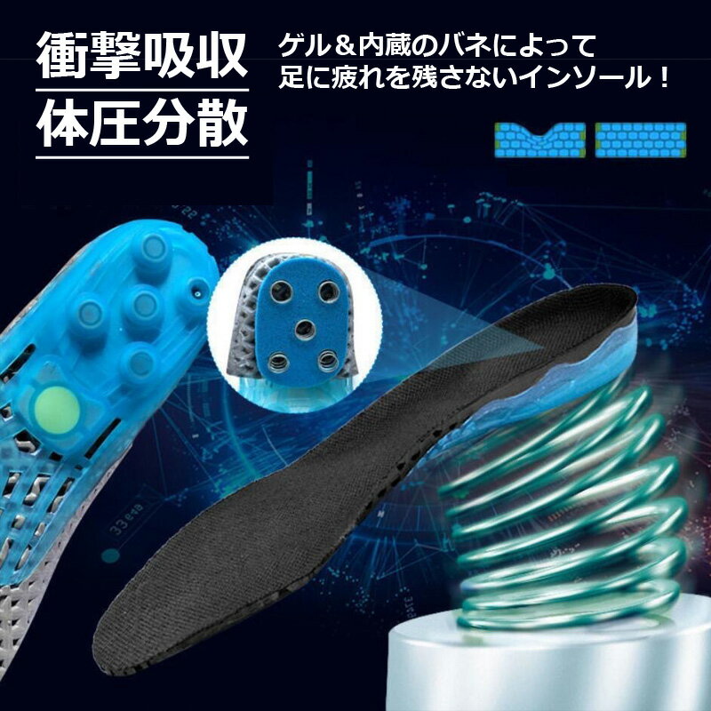 ゲル インソール バネクッション 22cm~29.5cm メンズ レディース スポーツ ウォーキング ランニング 中敷 衝撃吸収 ジェル 中敷き サイズ調整可能 体圧分散 通気性抜群 足裏 衝撃 靴 革靴 登山 軽量 漁業 畑 通勤 営業 立ち仕事