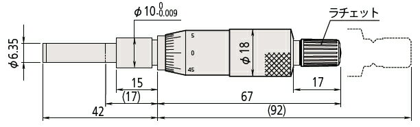 ミツトヨ(Mitutoyo) MHN1-25(150-192) マイクロメータヘッド(標準形) 汎用タイプ ストレートステム 先端平面 ラチェット付 測定範囲:0〜25mm