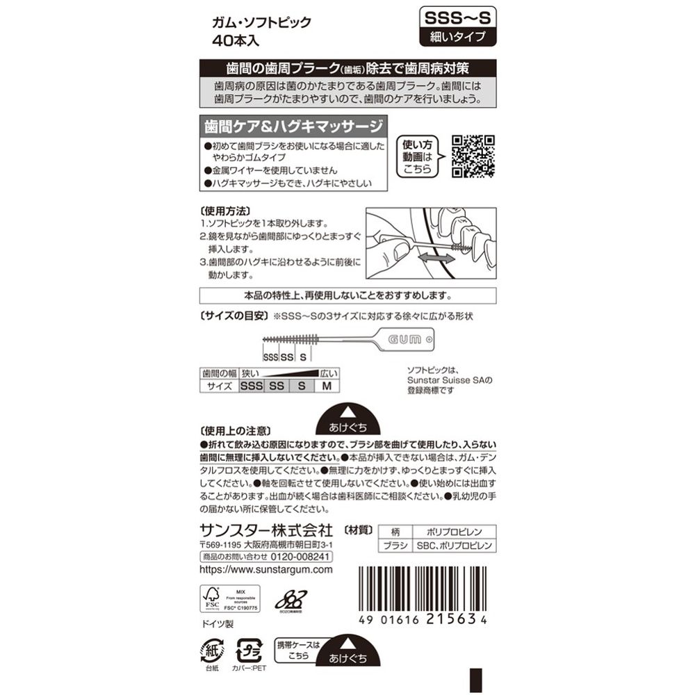 \レビュー特典有/【2個セット】 サンスター ガム・ソフトピック SSS-S [単品内容量/40本] | 姫流 セール サンスター GUM ガム 歯間ブラシ 無香料 ソフトピック ゴムタイプ 持ち運び 携帯ケース 初めて ワイヤー不使用 口腔ケア コスメ 歯ブラシ