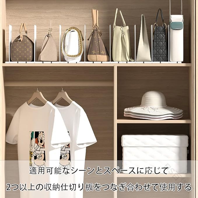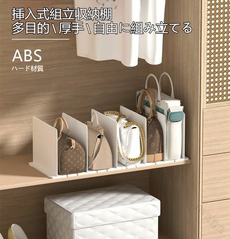 バッグ収納スタンド 3列 4列 5列対応 カバン 鞄収納 スマート クローゼット収納 調整可能仕切り幅 台座連結 卓上収納ラック 書類ホルダー キッチン収納 便利 押入れ収納 ホワイト 透明色 新作 仕切りスタンド 自立