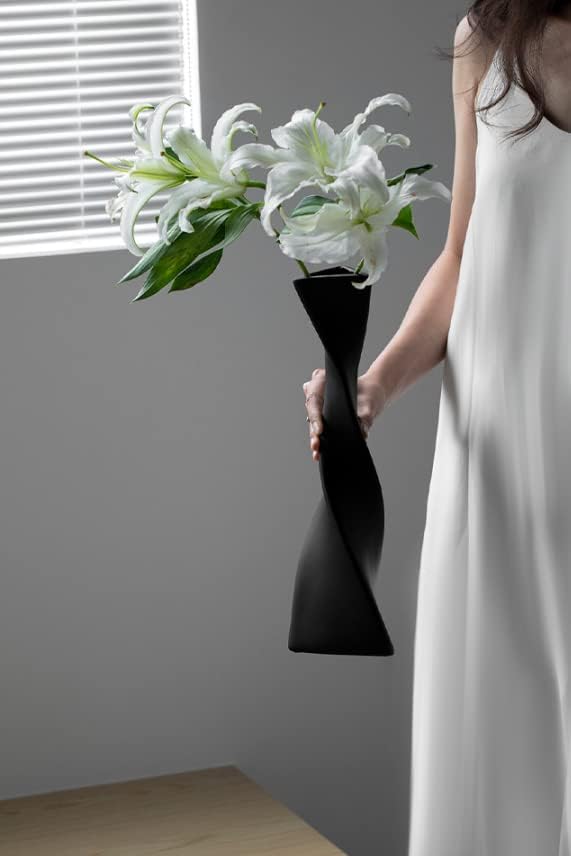 ブラック陶磁器 花瓶 長め 芸術 生け花 室内用 テーブル用 リビングルーム 部屋飾り 41センチ 父の日