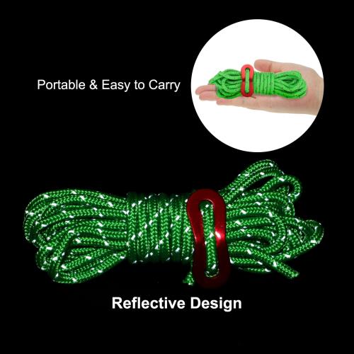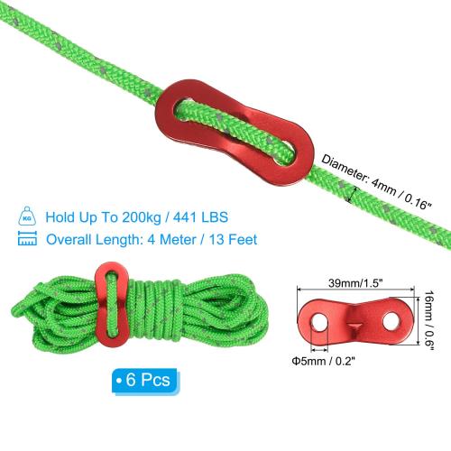 PATIKIL 4mm テントロープ 6パック13ft 反射ガイラインコードタイダウンロープパラコードコードキャンプロープ レッドいアルミコードアジャスター付き キャンプハイキングテント用 緑