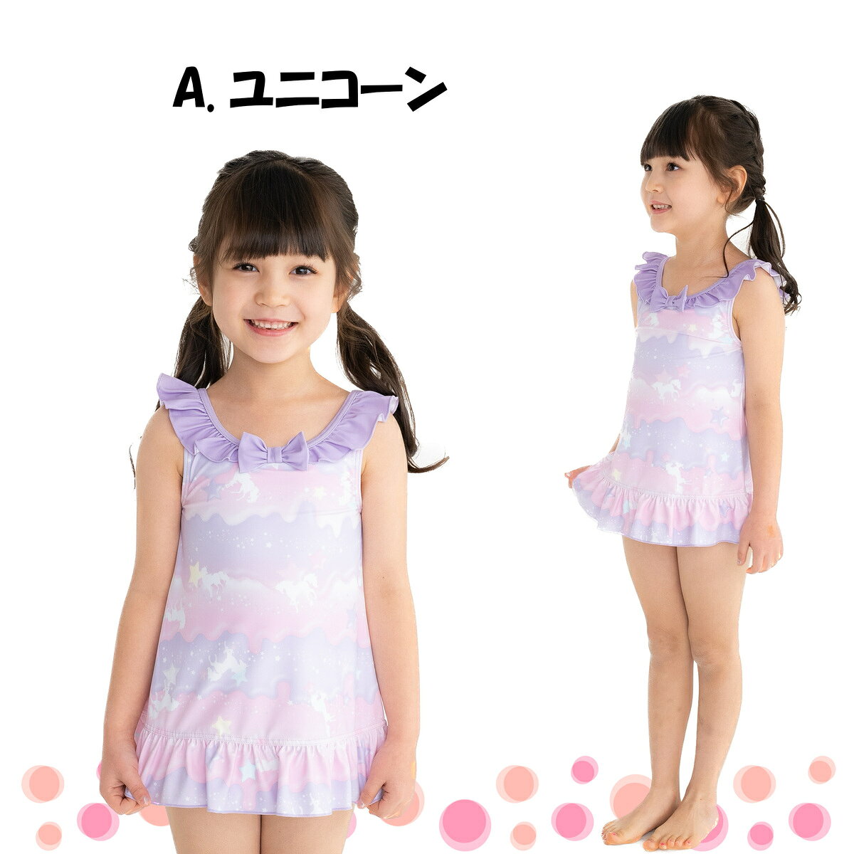 ☆ ワンピース 水着 スイムウェア ユニコーン リボン フラワー フリル UPF50+ UVカット 水泳 プール スイムグッズ 女の子 キッズ ジュニア 子供 おしゃれ 可愛い かわいい お花 ピンク ブルー 90cm 100cm 110cm 120cm 130cm