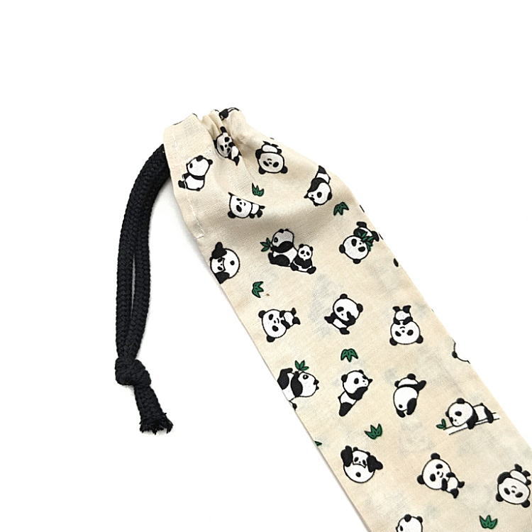 はし袋・小(23cm×6cm)【ミニパンダ柄 アイボリー】箸袋 はし入れ 箸入れ ハブラシ入れ 細長巾着 ランチセット 日本製 プリント ハンドメイド コットン生地 綿 布 可愛い 洗える 入園 入学 幼稚園 保育園 小学校 中学校 子供 キッズ 男の子 女の子 ぱんだ アニマル 動物