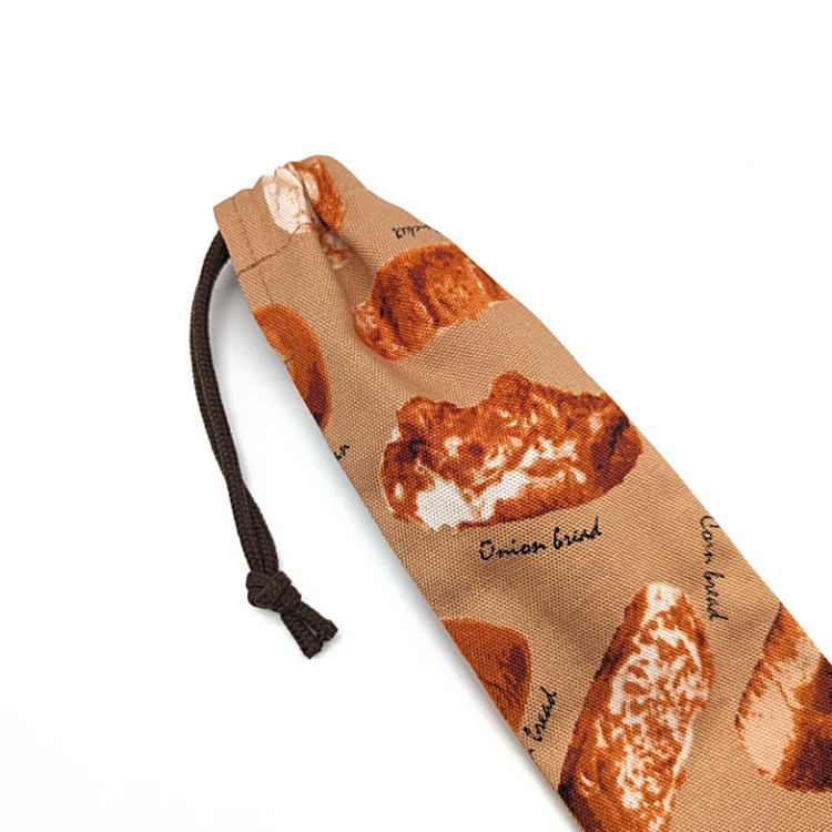 はし袋・大(25cm×6cm)【ベーカリーパン柄 ブラウン】箸袋 はし入れ 箸入れ マイ箸 お箸ケース ハブラシ入れ お弁当 携帯用 細長巾着 ランチセット 日本製 プリント コットン生地 綿 布製 可愛い 入園 入学 幼稚園 保育園 小学校 中学校 ぱん ブレッド 食パン メロンパン