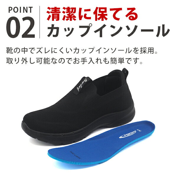 スニーカー スリッポン メンズ 靴 黒 ブラック 灰色 グレー 軽量 軽い 疲れにくい 歩きやすい クッション性 清潔 屈曲性 シンプル おしゃれ 通勤 通学 外せるインソール ベアサーフ BEAR SURF BS-1058