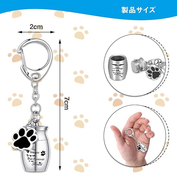 【送料無料】ミニ骨壷 遺骨入れ 納骨容器 犬 猫 ステンレス製 メモリアルキーチェーン 密封性 防湿 防水 分骨用 遺灰 収納 小鳥 小動物 適用 銀色 1pcsブランド色銀色モデル329商品説明【商品概要】商品サイズ:7x2cm、ステンレススチール、キャニスターサイズ:2.5x1.6cm、カラー:シルバー、1個セット。ペットの肉球を模したデザインで、大切なペットとの絆をいつまでも感じられるアイテムです。完全防水型です,密封がさらに強く、コンパクト,軽量,防圧,携帯型、湿気や汗な粉体を守る完全防水型です。遺骨キーホルダーとしても使用でき、バッグや鍵に簡単に取り付け可能です。いつでもどこでも、愛するペットの記憶を身につけることができます。ペット遺毛入れ、ワンちゃんの遺品、愛犬の犬歯と遺骨を入れる。愛猫、愛犬といつも一緒にいられるような癒されます。【商品説明】愛猫、愛犬といつも一緒にいられるような癒されます。【商品詳細】商品種別:犬用メモリアル用品商品名:【送料無料】ミニ骨壷 遺骨入れ 納骨容器 犬 猫 ステンレス製 メモリアルキーチェーン 密封性 防湿 防水 分骨用 遺灰 収納 小鳥 小動物 適用 銀色 1pcs製造元:商品番号:329色:銀色【当店からの連絡】お客様にご満足いただけるよう、最後まで誠意を持って気持ちの良いお取引を心がけております。
