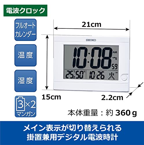 セイコークロック 置時計 電波 白 デジタル 150×210×22mm SQ447W