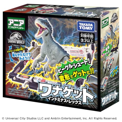 インドミナス・レックス・Style:インドミナス・レックス・(C) Universal City Studios LLC and Amblin Entertainment Inc. All Rights Reserved. (C) TOMY・電池は使用しません。商品紹介 ビークルを恐竜めがけてビークルシュート! ビークルが変形して、恐竜をゲットだ! ビークル(車)を恐竜アニアめがけて走らせて、ぶつかると枠状に変形します。 うまくぶつけると、恐竜フィギュアを囲って捕まえることができます。 ワナゲットビークル(シルバー)、インドミナス・レックスのアニアが入っています。 インドミナス・レックスは、口、あし、しっぽが動きます。 【セット内容】ワナゲットビークル(シルバー)(1) インドミナス・レックス(1) シール(1) 安全警告 該当なし