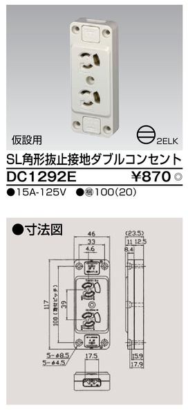 DC1292E 【東芝】 SL角形抜止接地ダブルコンセント