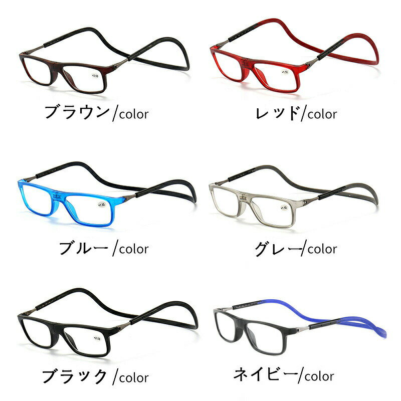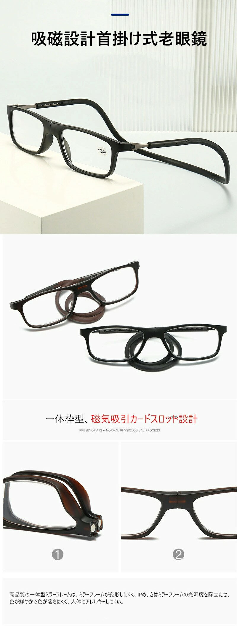 首掛け式老眼鏡 磁気吸引老眼鏡 軽量 シリコンフレーム 180°折りたたみ 便利な首掛けデザイン 調整可能 老眼鏡 男女兼用 多カラー選べる 高品質ミラーフレーム 視力補正 読書用 収納簡単