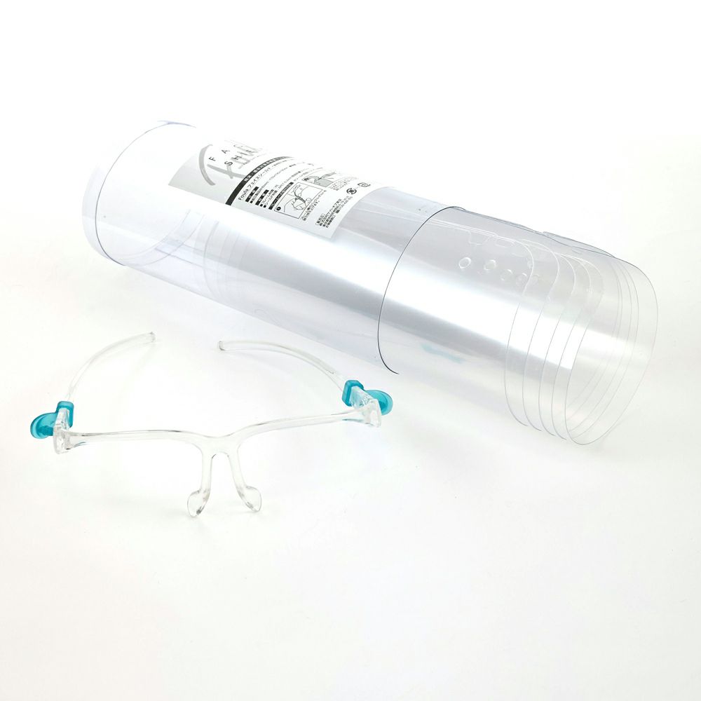 商品説明 飛沫・感染対策用超軽量フェイスシールドです。痛くなりにくいメガネタイプで、長時間の装着でも疲れない、超薄型シールドを採用。耳もとに優しくノーズ部分にもやさしくフィットし、快適な装着感を保ちます。 商品詳細 数量 フレーム×1、シールド×5 サイズ フリー カラー クリア 材質 APET0.2mm、両面防曇フィルム 使用方法 シールド両面についている保護フィルムを剥がし、フレーム横のバックルボルトを指で持ち上げます。シールドとフレーム穴を合わせます。このときシールド凹部をストッパー根本までしっかり押し込みます。ストッパーをフレーム穴にしっかり差し込みます。 製造国/原産国 中国 注意事項 ※施術で使用される場合は、お客様毎に変えて頂き、丸洗いもしくはアルコールで除菌してからご使用ください。 ※シールドは洗えますが、傷や変形することがあります。優しく洗ってください。 ※材質がPETのため、煮沸(熱湯)消毒はしないでください。