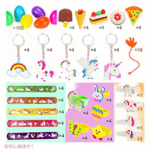 ガボス 100個パック プレフィルドイースターエッグ おもちゃとユニコーン入りプラスチック製イースターエッグ入りおもちゃ