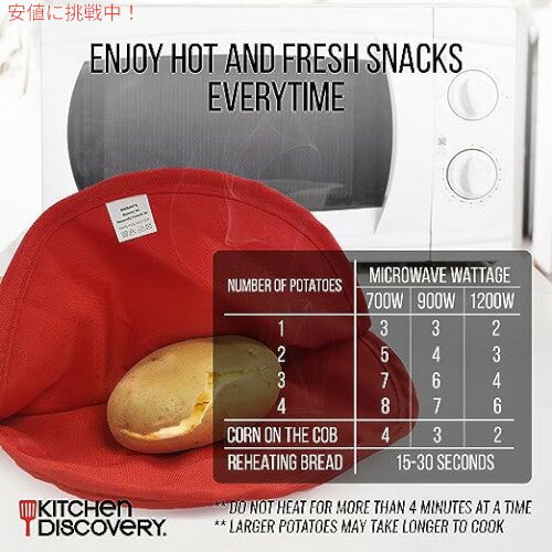 電子レンジでふわふわのベイクドポテトが出来上がります! オーブン焼きなどと比べて時間がかからず、約4分で柔らかく仕上がります。 スイートポテト作りのサツマイモの調理にも最適です。 耐久性のあるポリエステル製なので、洗えて繰り返しご使用できます。