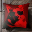 サングラス コーギー 赤い照明 犬 クッションカバー 45×45cm アニマル柄 おしゃれ 可愛い クッション本体付き 正方形