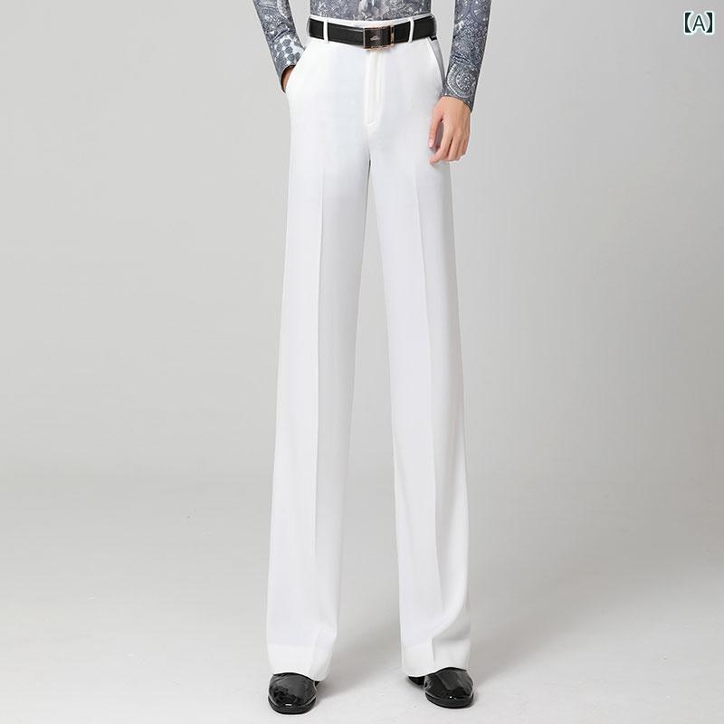 社交ダンス 衣装 メンズ モダン パンツ ストレート ボトムス 白 かっこいい ダンサー パフォーマンス 発表会 練習着 厚手 ラテン ゆったり