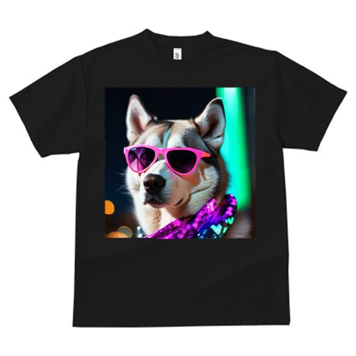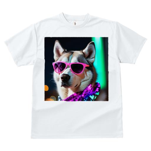 Tシャツ レディース 犬ファン 半袖 春夏 犬柄 プリント カジュアル かわいい 人間用 フィットネス ダンス サングラス シベリアンハスキー パーティーカラー