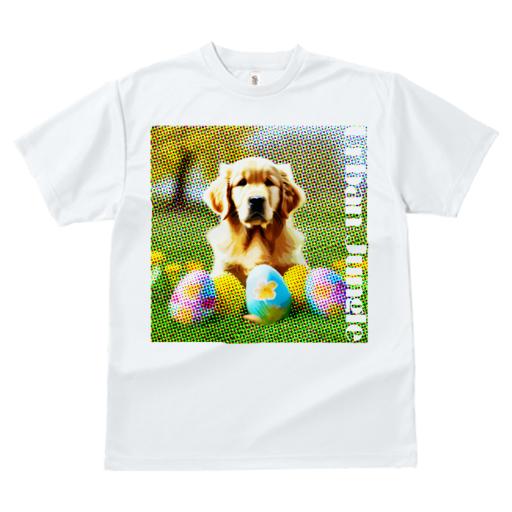 Tシャツ レディース 犬ファン 半袖 春夏 犬柄 プリント カジュアル かわいい 人間用 フィットネス ダンス イースターエッグ ゴールデンレトリバー 草原 アーバンジャングル