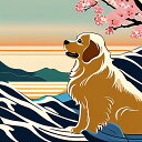 桜 ゴールデンレトリーバー 波 海 山 クッションカバー 45×45cm アニマル柄 おしゃれ 可愛い クッション本体付き 正方形 犬ファン