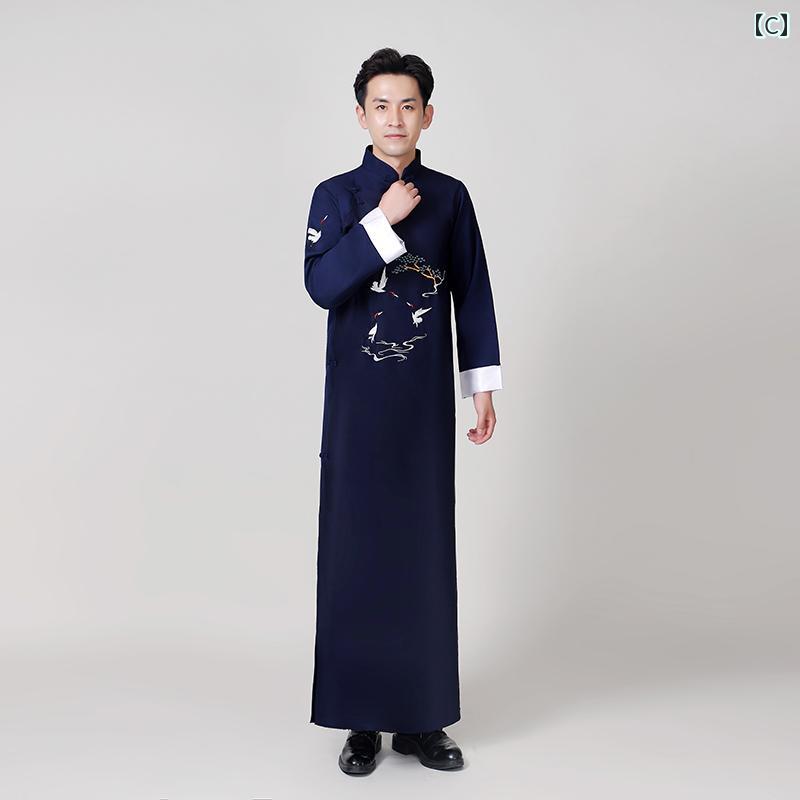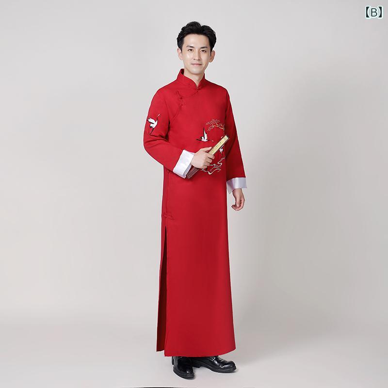 中国 漢服 男 チャンパオ ロング ガウン メンズ コミック 衣装 鶴 バンブー 不死鳥 刺繍 ローブ レトロ 唐 パフォーマンス 160cm 175cm 190cm 赤 青 黒