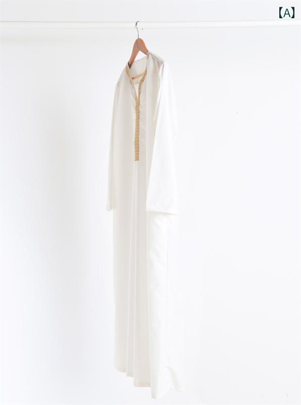 エスニック ファッション 大人 メンズ 男性 紳士 サウジアラビア 刺繍 ローブ ドバイ 王室 ルーズ ゆったり 大きいサイズ Vネック ロング 夏 白 黒