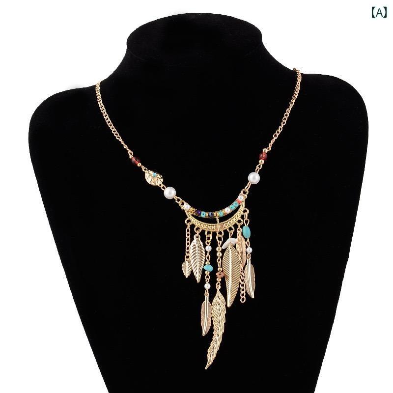 ネックレス レディース ロングチェーン タッセル リーフモチーフ 韓国 シンプル 重ね付け