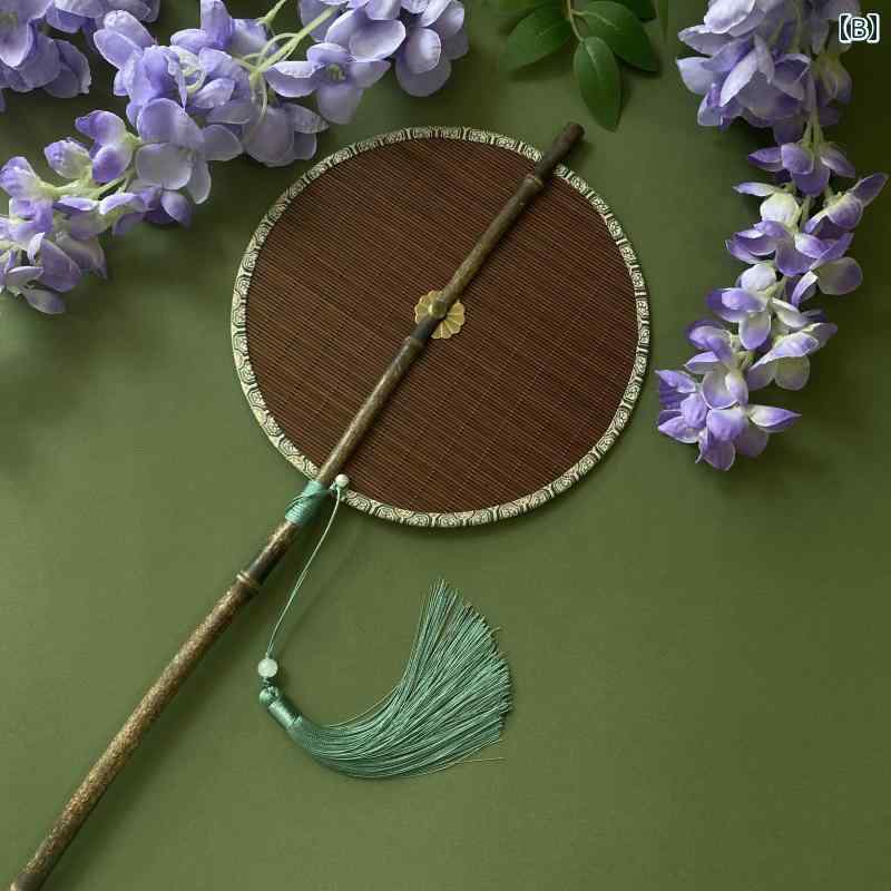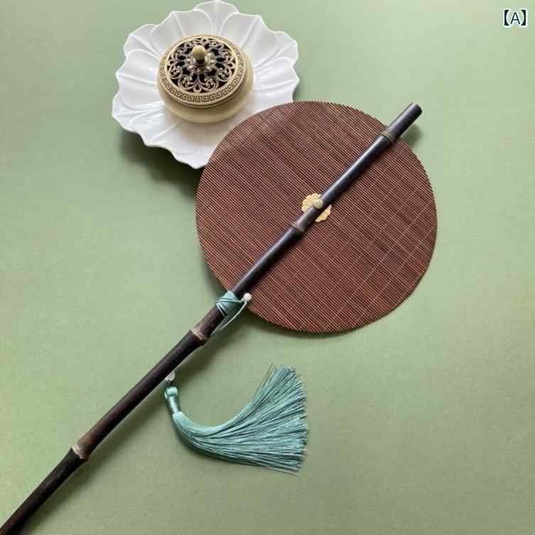 中国 扇子 レトロ 紫竹 ロング柄 巻き取り式 タッセル うちわ 持ち運び便利 腰掛け 漢服 小物 シンプル 無地 円形 花びら 舞踊 演劇 小道具 おしゃれ 装飾品