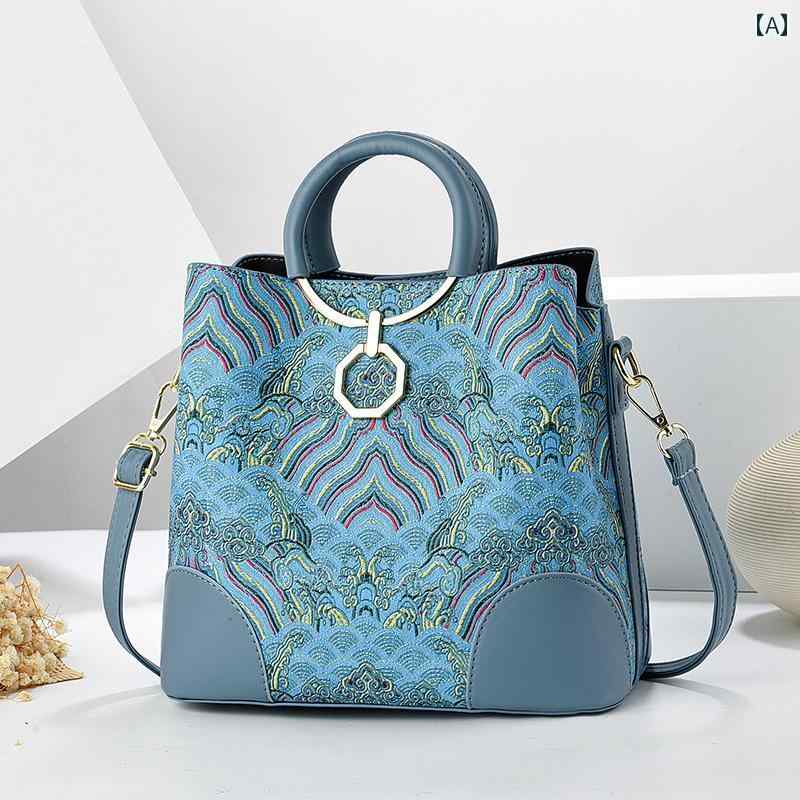 ハンドバッグ レディース おしゃれ 大人 和装 母の日 プレゼント 革 バケツ型 大容量 ショルダー 古風 中国風 手提げバッグ