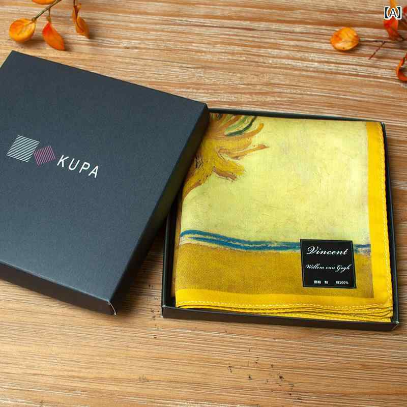 ハンカチ ゴッホ 名画 星空柄 ひまわり柄 アイリス柄 綿 吸水速乾 ミニタオル デイリー 男女兼用 やわらか 肌触り