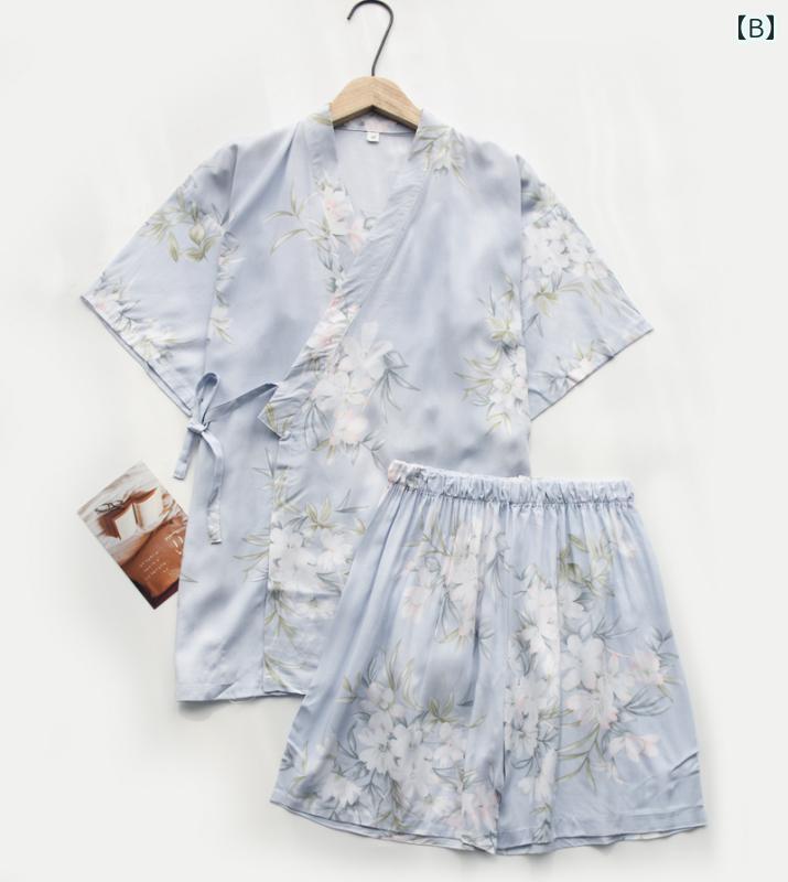 和風パジャマ レディース 半袖 ショートパンツ セットアップ 再生 薄手 Vネック 花柄 ボタニカル柄 帯 ルームウェア 部屋着 春夏 リラックス ゆったり