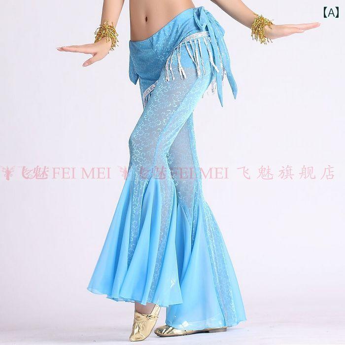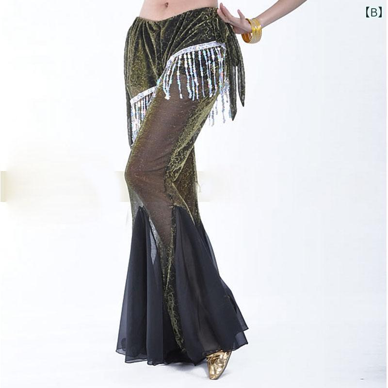 ベリーダンス パンツ レディース マーメイドライン 光沢 キラキラ メタリック 伸縮性 レッスン 練習用 発表会 ステージ衣装 イベント フレア ボトムス