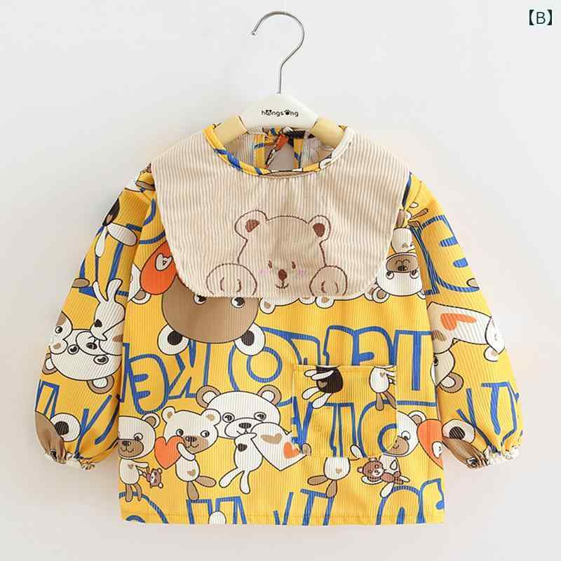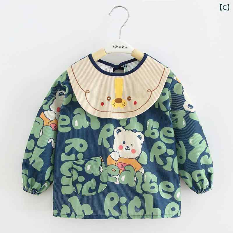 スモック 子供 キッズ ベビー 男の子 秋冬 後ろ開き 紐 着脱簡単 長袖 よだれかけ付 ポケット 防水 汚れにつよい 柔らかい 肌に優しい コーデュロイ エプロン 砂遊び 工作 かわいい クマ ハート 英字 緑 グレー 黄色