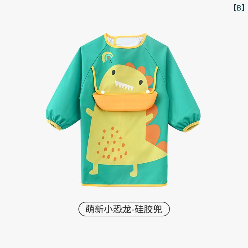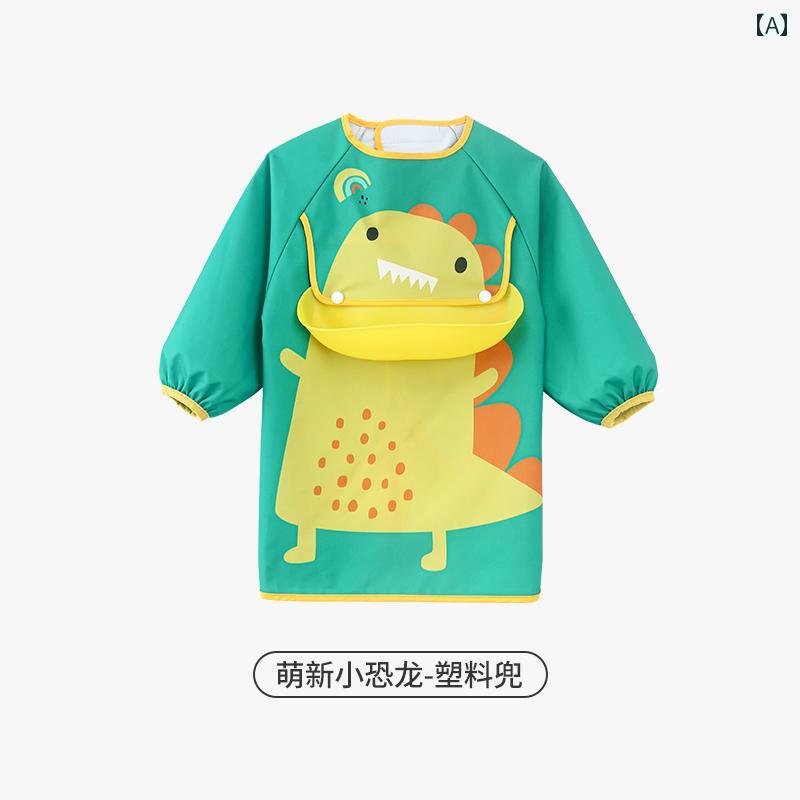 スモック 子供 キッズ ベビー 男の子 女の子 秋冬 後ろ開き 面ファスナー 紐 着脱簡単 ロング丈 長袖 防水 汚れ防止 ポケット取り外し可能 シリコン プラスチック エプロン 砂遊び 工作 かわいい 恐竜 ライオン ウサギ