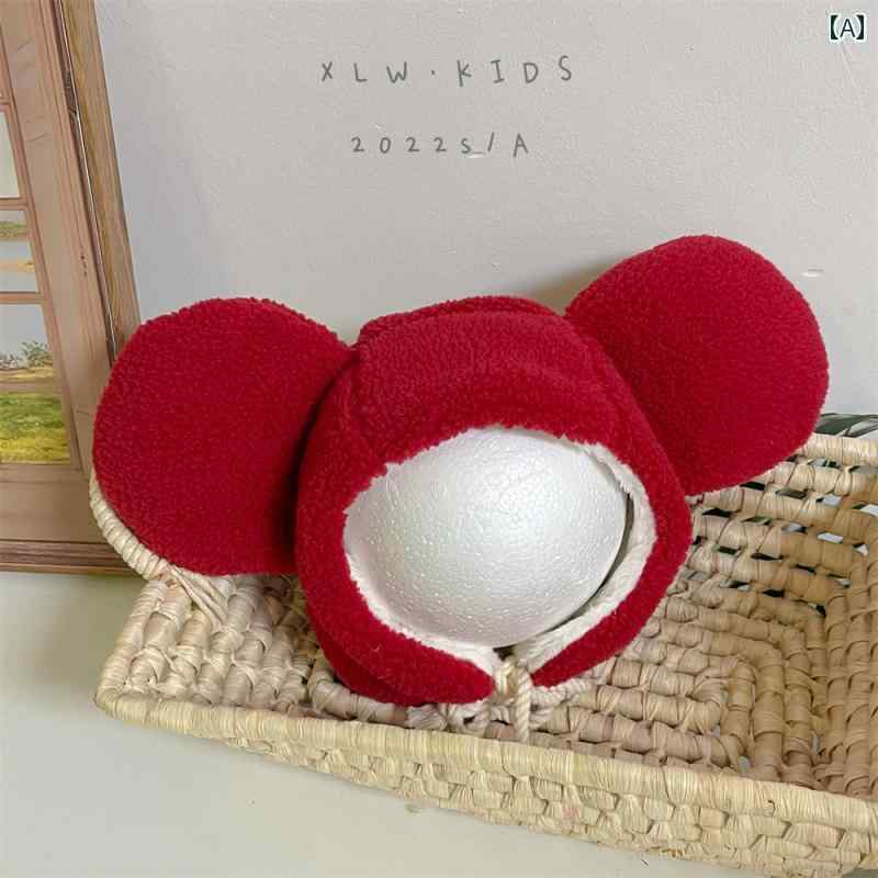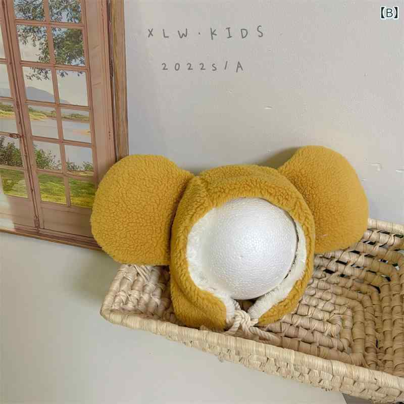 子供 イヤーマフ 防寒 かわいい 大きな 耳 赤ちゃん ぬいぐるみ 帽子 秋冬 厚手 暖かい 男の子 女の子 男女兼用 保護 ドーム 登園 ピクニック ボリューム もこもこ 紐付き レッド イエロー ピンク