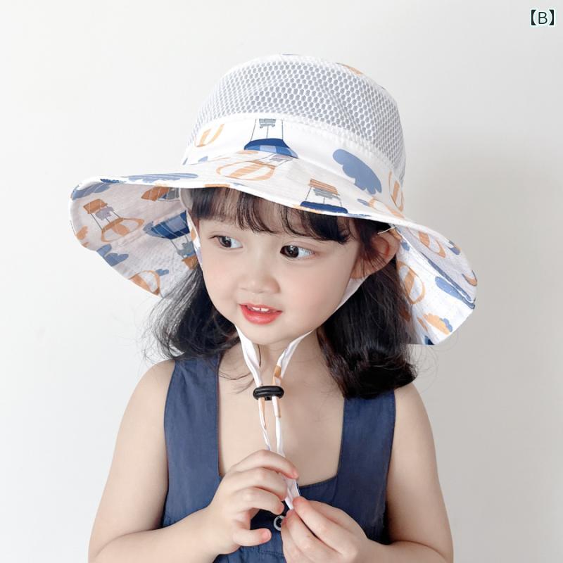 日よけ 帽子 キッズ 子供用 日焼け防止 春夏 秋 ベビー 薄手 女の子 男の子 フィッシャーマンハット 涼しい 通気性 恐竜 気球 魚 白青 ピンク