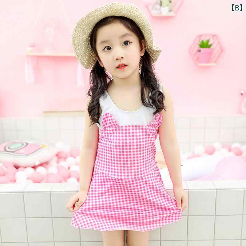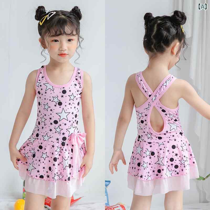 水着 ワンピース キッズ 女の子 ベビー スカート ラウンドネック リボン ノースリーブ 背中開き 水遊び 海水浴 かわいい 星柄 チェック 英字 大きいサイズ ピンク 青