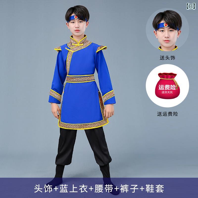 モンゴル 衣装 ダンス キッズ 女の子 男の子 ローブ 少数 民族 女性 ブルー ホワイト レッド 長袖 ロング丈 上下 セット ヘアアクセサリー ベルト シューズカバー