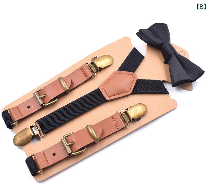 サスペンダー キッズ 子供 ショルダー ストラップ クリップ 蝶ネクタイ ボウタイ スーツ レトロ 男の子 女の子 パフォーマンス 入学 卒業 フォーマル シンプル 無地 黒 グレー 青