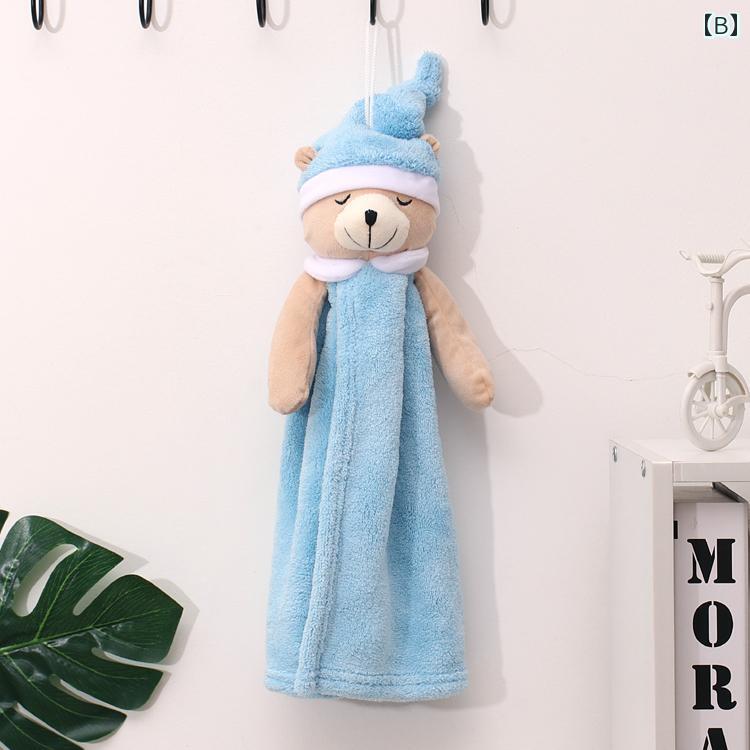 タオル キッズ 男の子 女の子 キッチン ハンドタオル 吸水性 速乾 吊り下げ式 フック付き かわいい キャラクター アニマル サンゴフリース マイクロファイバー 手拭き クロス 布巾 ピンク ブルー グリーン