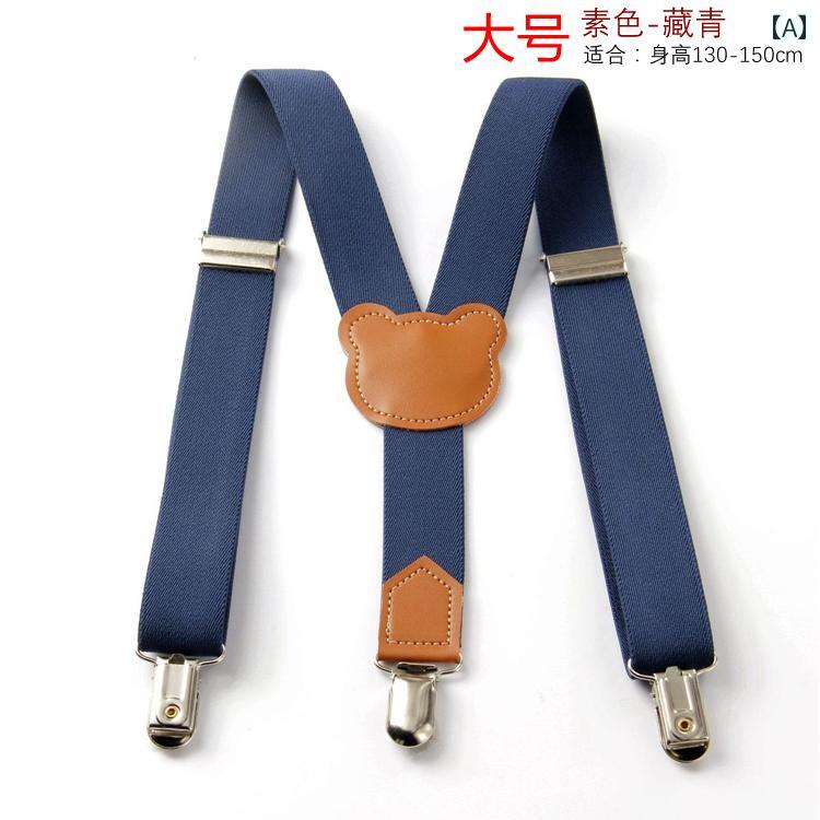 サスペンダー キッズ 男の子 女の子 学生用 発表会 イベント 通学 カジュアル フォーマル 3クリップ 伸縮性 弾性 幅広 負担軽減 調節可能 アジャスター付き くま柄 スター柄 ドット柄 アンカー柄 かわいい 紺 茶 黒