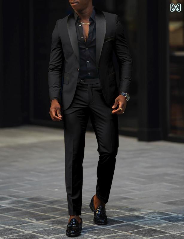 スーツ メンズ セットアップ テーラードジャケット スラックス パンツ スリム タイト 礼服 結婚式 披露宴 新郎 シングルボタン ショールカラー サイドベンツ 高級感 綿混素材 ブラック グレー ワインレッド 秋冬