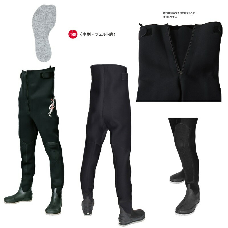 仕様表前ファスナーで着脱ラクラク。しかも水が浸入しない防水仕様衝撃吸収力に優れたプレスヒザパッド付き干しやすいハンガーループ脱ぎやすいキックオフ調整可能なチェストベルトHANSHINKIJI阪神素地 FX-537 スリムウエーダー 中割●品番:FX-537●素材:CRスポンジ(4mm厚)+両面ジャージ●カラー:ブラック●サイズ:26X詳細はこちら