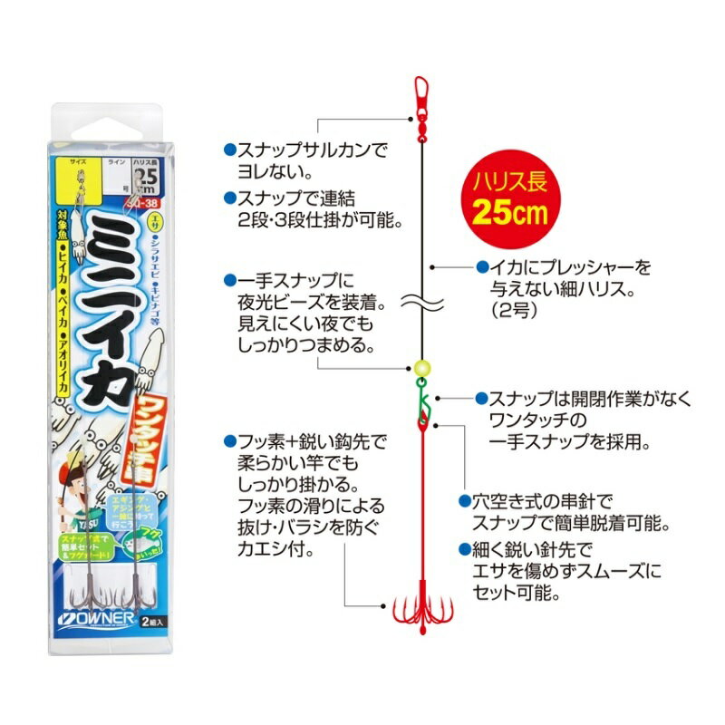 オーナー SQ-38 ミニイカワンタッチ串仕掛 M 【釣具 釣り具】