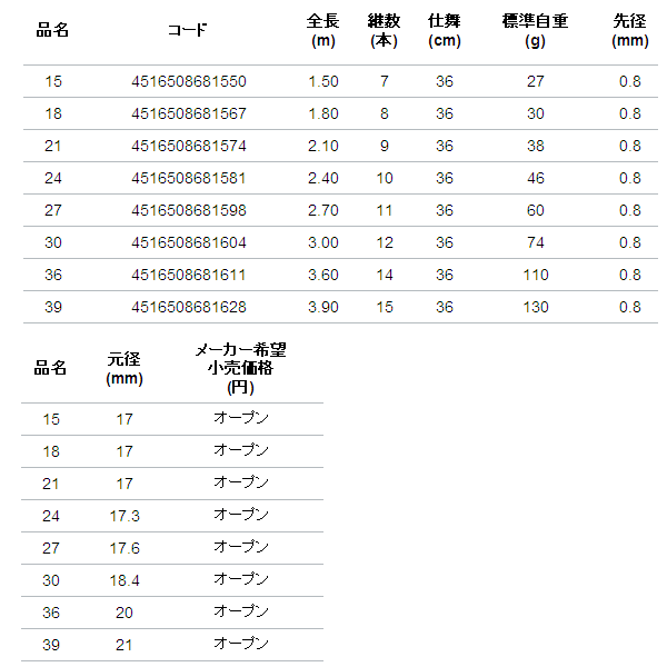 15〜39まで30cm刻みのラインナップ。 ☆★掲載写真は参考掲載です!★☆ お譲りする商品は【上記タイトル記載商品】1点のみです。お間違いのないようお願い致します。/シ ◆写真の本体価格には消費税は含まれておりません◆ メーカー希望小売価格はメーカーサイトに基づいて掲載しています