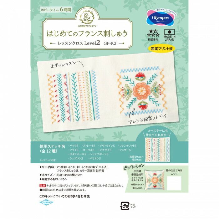 オリムパス GARDEN PARTY はじめてのフランス刺しゅう レッスンクロスLevel2 GP-K2 【北海道・沖縄・離島配送不可】