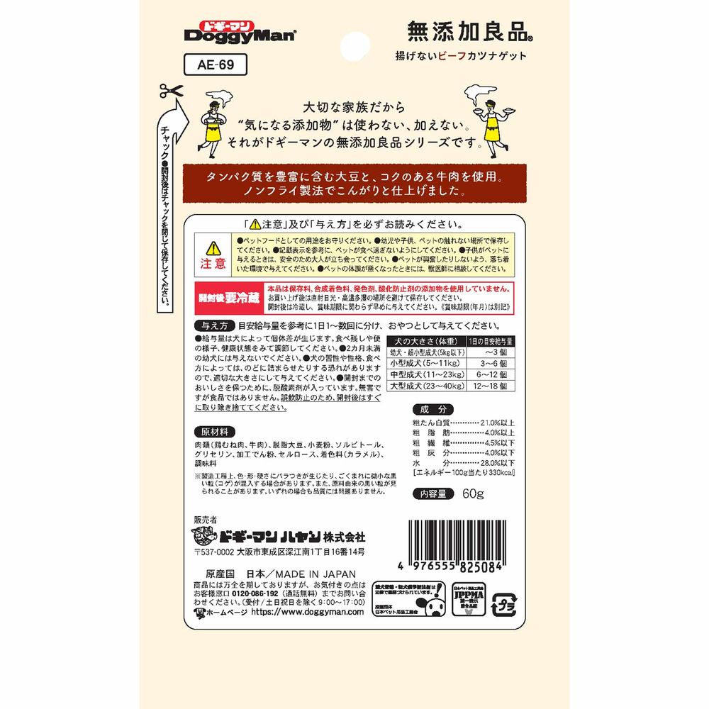 ドギーマン 無添加良品 揚げないビーフカツナゲット 60g 犬用おやつ 【北海道・沖縄・離島配送不可】