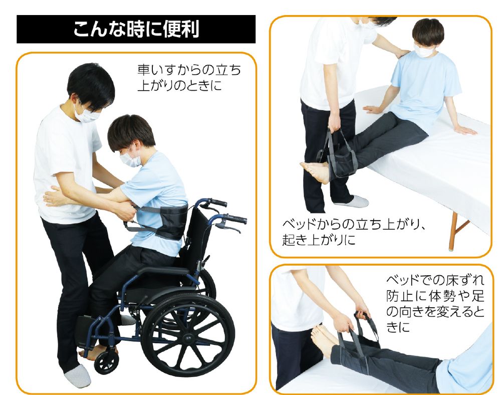 介助者の負担を軽減するサポートベルトコンパクトに折りたためるので持ち運び便利 起き上がり、立ち上がりなどの移乗に【詳細】セット内容:本体×1商品サイズ:約750x200mm(ハンドル部分除く本体サイズ約450x200mm)材質:外側生地:ポリエステル、中身:ポリウレタン、持ち手:PP・PVレザー[ 介護用品 ]