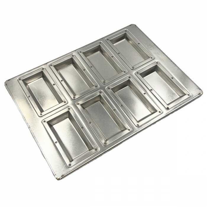 <<ご注意下さい>>こちらの商品はメーカーよりお客様へ直接お届けの品になります。 当店での在庫はしておりません。在庫の有無はメーカー在庫のみになりますので、急な欠品や急に廃盤になる可能性がございます。こちらの商品の配送について○北海道・沖縄・離島につきましては、配送不可となりますので予めご了承お願いします。こちらの商品の包装(ラッピング)について○上記の理由(メーカーより直送)により包装はできませんので予めご了承お願いします。こちらの商品の不具合について○お届けしましたこちらの商品に不具合があった場合、商品到着日より1週間以内に当店にご連絡ください。メーカーが直接対応させて頂きます。○お客様がご自身で修理された場合、費用の負担は致しかねますので予めご了承下さい。オールシーズン使える定番のフィナンシェ型は、8個付けのため初心者から上級者まで人気の型です。家庭用オーブンに入るサイズで使い勝手のいい商品です。表面にシリコン加工がかかっており型離れの良さに定評があります。また当社の型は熱伝導も良く、焼き色も均一に仕上がります。空焼き不要のため軽く水洗いをするだけですぐにお使い頂けます。すべて日本製の材料を使用し、丁寧な商品の作り上げは自社ならではの逸品です。【シリコン加工製品の使用上の取り扱いについて】●空焼き、水への浸け置きおよび自動洗浄機でのご使用はシリコンが剥がれる可能性があります。●シリコンの塗膜は非常に薄いため、強くこすらないで下さい。(金タワシや研磨用のスポンジは使用しないで下さい)。●200度以上のご使用はシリコンの劣化が早くなることがあります。●使用時は離型油などを使用して下さい。●生地の配合、材料、型の形状によっては離型しづらい場合がございますので大量生産される場合は事前にテストをお願いします。●オーブン以外のご使用、直火は避けて下さい。石釜などザラついた天板の上でのご使用も避けて下さい。●洗浄する際は中性洗剤と柔らかいスポンジを使用して水気をよく切り乾いた布で拭いて下さい。●長期間ご使用されない場合は上記の方法で洗浄、乾燥後、湿度の低い場所で保管して下さい。●製造時のプレス工程によって避けられない傷、擦り傷等が商品にある場合がございますが、このような理由の返品は不可となります。●出荷時、梱包等による細かな傷等は返品の対象外となります。サイズ:22×30×1.15cm個装サイズ:32×23×2cm重量:580g個装重量:600g素材・材質:ブリキ仕様:食器洗浄機使用の可否:不可電子レンジ使用の可否:不可耐熱温度/耐冷温度:180〜200度生産国:日本