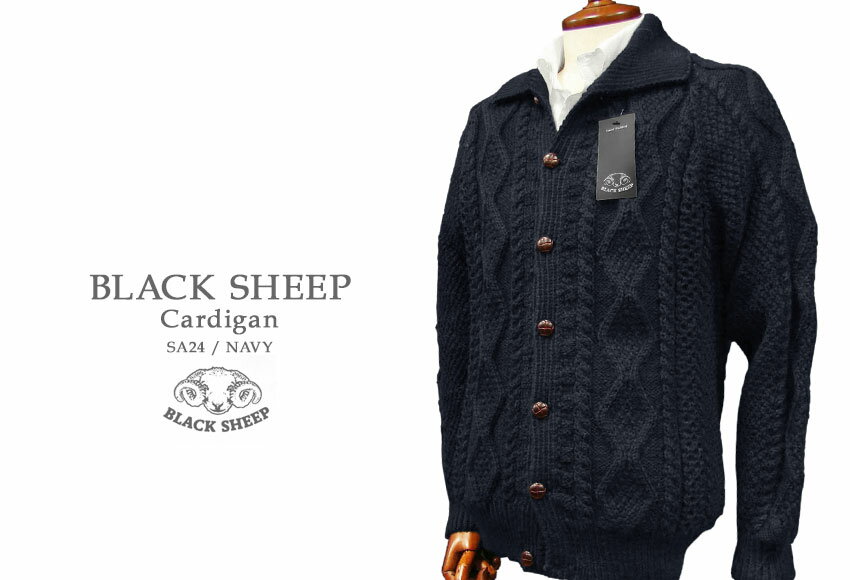 BLACK SHEEP / ブラックシープ アラン編みカーディガン ( ネイビー ) SA24 【楽ギフ_包装】