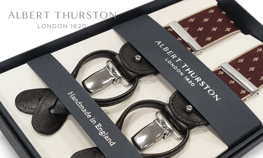 【日本正規輸入代理店商品】[ ALBERT THURSTON / アルバートサーストン サスペンダー ] 帯幅35mm / サスペンダー ( エンジ系地にベージュ系の小紋柄 ) ALG-58 ( メンズ ) 【楽ギフ_包装】【あす楽対応】